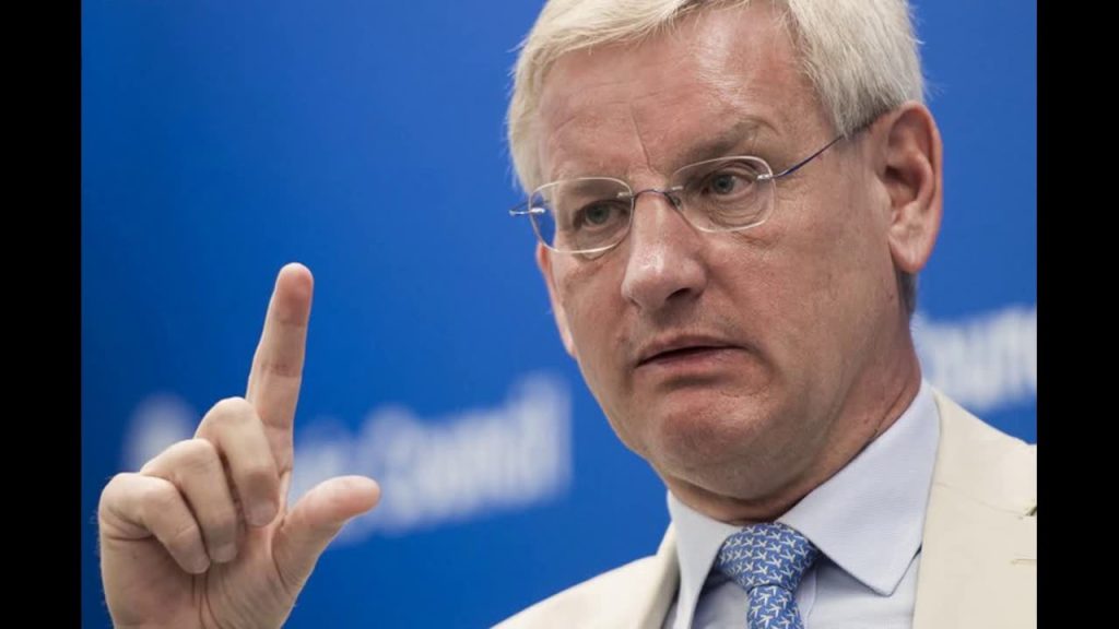 Un pion central du mondialisme et de la haute-finance. Pendant la période, il s’infiltra dans plusieurs conseils d’administration de sociétés. Il fut nommé au conseil d’administration de la Offentliga Hus i Norden AB, une société immobilière. Mais aussi dans la Legg Mason Inc, une société de gestions d’actifs américain de premier plan, basée à Baltimore dans le Maryland (elle fut rachetée par la société Franklin Templeton en 2020). Parmi d’autres conseils d’administrations, signalons les entreprises suédoises HiQ International AB, la Micro Systemation AB, la Magnora AB, l’International Crises Group (Belgique), ou encore le Centre for International Governance Innovation (Canada). Il fit bientôt un retour dans le gouvernement suédois, nommé Ministre des AE de la Suède (2006-2014). Sa longévité à ce siège, lui permit de mener de nombreuses actions… en soutien du Kosovo, de la Géorgie (2008), condamnant les Kurdes (en faveur de la Turquie), mais aussi les Ossètes (contre la Russie), puis les Criméens (en faveur de l’Ukraine et des USA, 2014). Durant cette période, il milita en permanence pour la fermeture du dialogue avec la Russie. Même après son départ du ministère, c’est lui qui pesa pour que la Suède participe à la formation et l’entraînement de soldats ukrainiens, l’envoi d’un soutien financier, de matériels et d’autres soutiens (en compagnie de 4 autres pays, le Canada, le Royaume-Uni, la France et les USA, 2015-2021). Il vînt même à Kiev et déclara que l’UE devait financer l’Ukraine pour l’aider dans sa guerre contre les populations du Donbass. Un fait très rare, même dans les agents les plus fanatiques en Europe.