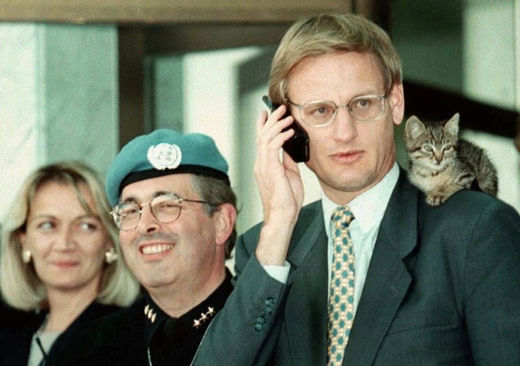 L’agent atlantiste et américain. Il fut alors nommé Haut représentant international en Bosnie-Herzégovine (1995-1997), après la guerre de destruction de la Yougoslavie. Ce titre s’accompagnait de celui d’envoyé spécial de l’Union européenne en ex-Yougoslavie (juin 1995), et il fut l’un des coprésidents de la Conférence de paix de Dayton (novembre 1995). Comme haut représentant, il fut chargé : « de superviser la mise en œuvre civile des accords de paix ». La Yougoslavie détruite, il fut nommé envoyé spécial de l’ONU dans les Balkans (1999-2001), au moment de l’agression de la Serbie. Il intégra une multitude de groupes douteux, tous liés aux USA, financés par eux ou visant la gouvernance mondiale. Citons notamment la Commission trilatérale (1998), une organisation privée du groupe Bilderberg, le Council of Foreign Relations (think thank US, menant à la CIA et l’USAID), le Centre of European Reform (think thank britannique pour maintenir le pays dans l’UE), l’Institut international d’études stratégiques (think thank, Londres), la Fondation Carnegie pour la Paix (fondation d’infiltration US), et fut un invité constant du groupe Bilderberg (depuis 1996). Il fut recruté également par la RAND Corporation (USA), une organisation liée à l’armée US et à la recherche. Il prit position en faveur des USA pour l’invasion de l’Afghanistan, puis de l’Irak (2001-2003). Enfin il milita… pour l’intégration de la Turquie dans l’UE.