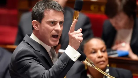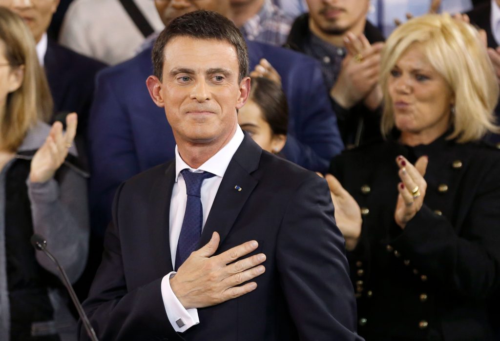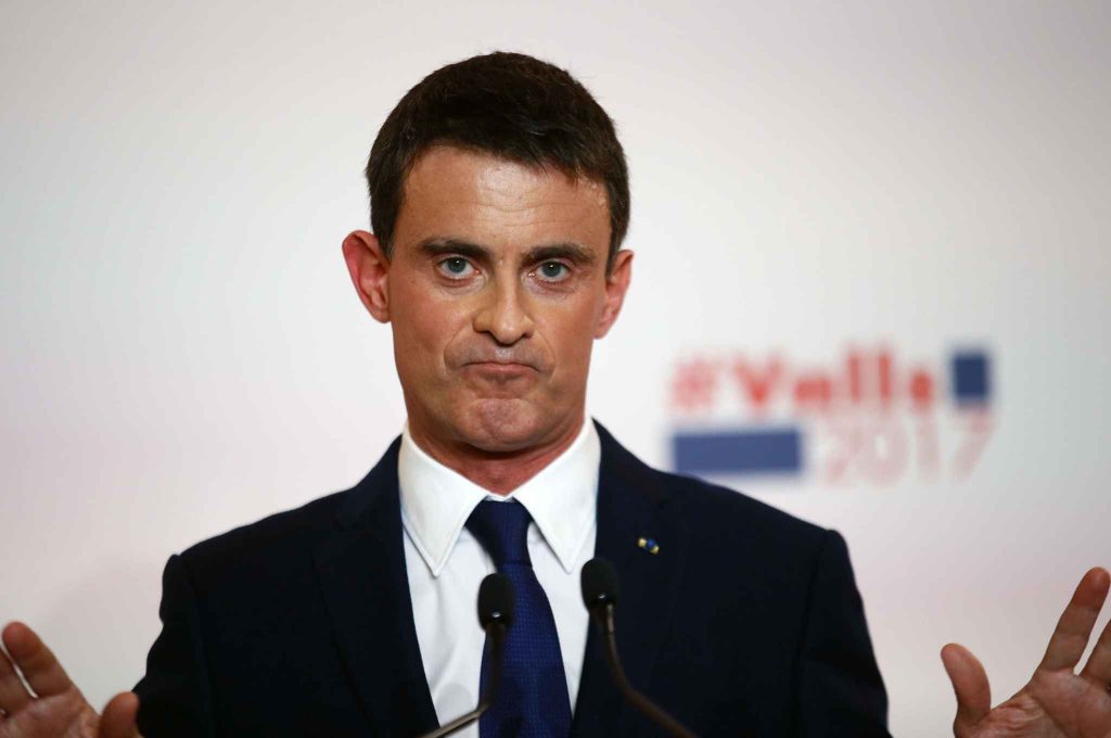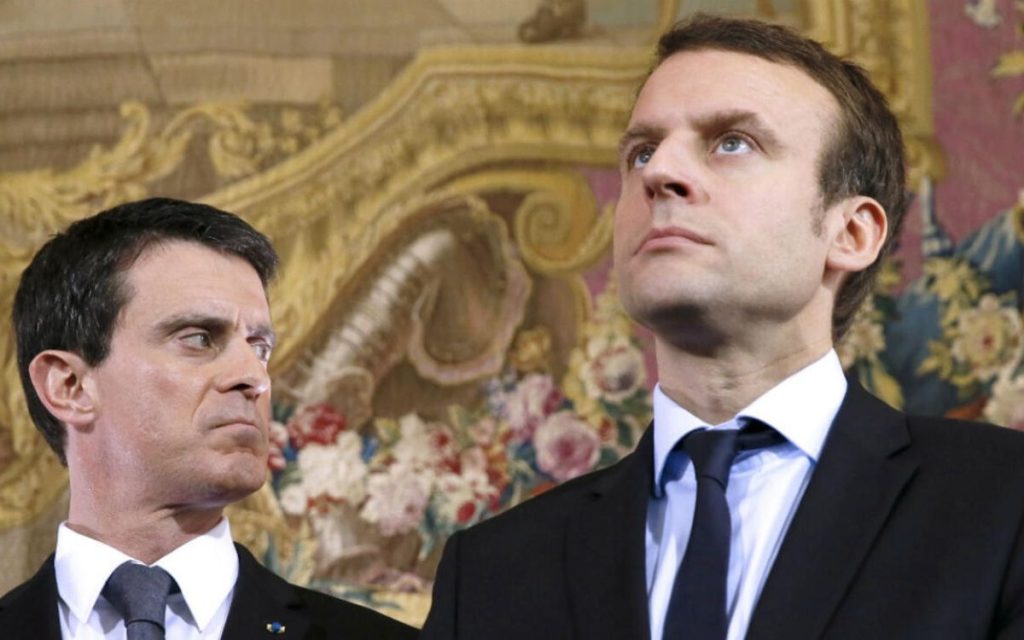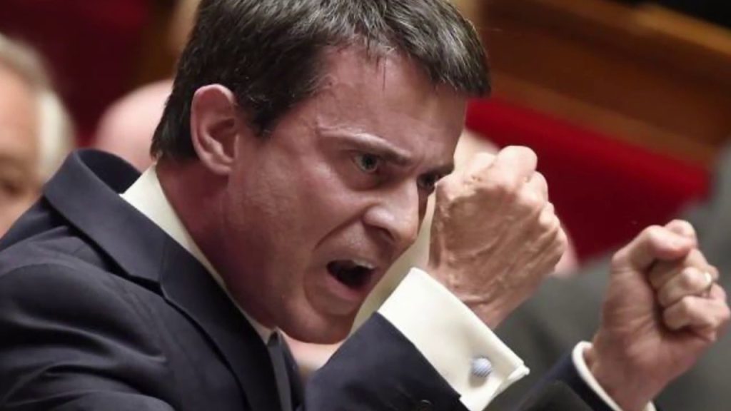 Manu la matraque, l’homme qui montrait les dents. Dans un contexte de dégradation rapide de l’opinion publique par rapport au PS et à François Hollande, avec l’apparition d’affaires comme celle de Cahuzac (2013), il s’imposa vite comme l’homme de la « situation » et fut nommé Premier ministre (2014-2016). Sa nomination intervenait après une déroute historique du PS dans les élections municipales. Il était alors encore populaire, malgré un début de dégradation de son image dans son bras de fer avec Dieudonné. Il déclencha vite une fronde dans son propre parti, avec une politique largement définie… non pas à gauche, mais libérale, voire ultralibérale. C’est à cette époque qu’il introduisit Emmanuel Macron dans le gouvernement, comme Ministre de l’Économie et soutint plusieurs de ses lois, notamment la Loi dite Macron (2015), qui ne passa qu’en employant à trois reprises le fameux 49.3. Sa popularité s’écroula rapidement, par son ton cassant, sa morgue, une violence contenue mais très visible et par l’apparition de vidéos où il soutenait la cause palestinienne, en corrélation avec ses déclarations de « soutien éternel à Israël ». Elle s’effondra complètement autour de la loi El Khomri ou loi Travail, provoquant des manifestations de masse et le mouvement Nuit Debout (2016). Là encore, dans la violence, il fit passer de nouveau la loi à grands coups de 49.3. Devenu le symbole du déni de démocratie, il s’imagina devenir un candidat plausible à la présidentielle de 2017, notamment lorsque François Hollande, conscient de sa propre impopularité et de sa défaite certaine, annonça ne pas se représenter. Il démissionna pour se consacrer à sa campagne d’abord dans le PS et la primaire annoncée (6 décembre 2016).