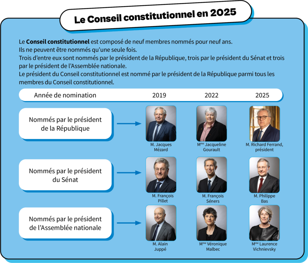 Une institution népotique dans les ors de la République. Les membres étant nommés par le président de la république, celui du Sénat et celui de l’Assemblée nationale, l’essence même du conseil est loin de la démocratie. Ces nominations provoquent souvent les critiques, alors que tous les présidents ont usé de ce pouvoir pour placer des « hommes de main », dans le fameux conseil. C’est ainsi que le Président Macron attira les critiques, lors de sa proposition de nommer son ancienne ministre de la Cohésion des territoires, Jacqueline Gourault. Il s’agissait d’un énième placement de personnages, n’ayant d’ailleurs aucune expérience en droit constitutionnel, dans un conseil qui réclamerait sa totale dépolitisation. L’idée a souvent été repris dans les médias, comme une nécessité, car le Conseil constitutionnel viole les principes de la séparation des pouvoirs, qui furent théorisés par Montesquieu au XVIIIe siècle. La peur du régime d’en faire un véritable instrument de contrôle de la Constitution, d’un véritable gardien de la République, est la principale raison de son maintien dans son état d’impotence. L’exemple avait pourtant été montré de longue date, notamment au moment de la rédaction du Code Civil, appelé aussi Code Napoléon (1804). Bien que portant le nom du chef de l’État, les rédacteurs du code furent de grands juristes, comme Bigot de Préameneu, Jacques de Maleville, François-Denis Tronchet et Jean-Étienne-Marie Portalis. Sous la direction de Cambacérès, également spécialiste en la matière, Napoléon n’y ajouta pas une ligne et le Code Civil eut un tel retentissement et succès, qu’il est resté en application, bien sûr avec de nombreuses amendements et transformations jusqu’à nos jours. Mieux encore, il fut copié et instauré dans de nombreux pays, parfois très longtemps après son apparition, comme à la renaissance de la Pologne en 1918. Quant aux membres actuels du Conseil constitutionnel, non seulement ils seraient en peine de rédiger une nouvelle constitution pour une éventuelle VIe République, mais leur incompétence est notoire en matière de droit constitutionnel, une science par ailleurs connue seulement de quelques rares spécialistes en France. Cette incompétence s’ajoute à un autre problème d’importance, c’est la corruption et les scandales que traînent derrière eux les membres du conseil. Mais pour y voir plus clair, intéressons nous aux grandes figures du conseil, du présent et du passé.