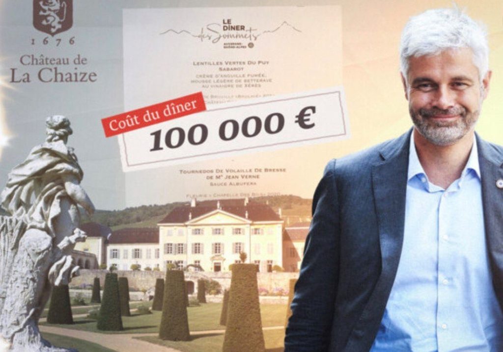 Rattrapé par la justice : les fastes des dîners gargantuesques de Wauquiez. Mais une affaire défraya bientôt la chronique, celle du Dîner des sommets. Alors qu’il était encore président de la région Auvergne-Rhône-Alpes, il avait organisé un incroyable dîner, d’un faste éhonté dans le château de La Chaize dans le Beaujolais, avec environ 90 invités. Dépensant l’argent public sans compter, le fameux dîner avait coûté la modique somme de… 100 000 euros, soit plus de 1 100 euros par personne, quasiment le salaire minimum de gens modestes dépensés pour un aréopage de nantis gavés de petits fours, de mets fins, de vins coûteux et de champagne. La facture fut aussi alourdie par : « 50 000 euros de frais d’organisation auprès d’un prestataire ». Le scandale éclata par le journal Mediapart, choquant la France, alors que l’opposition dans le Conseil régional réclamait à hauts cris la liste des invités (91 au total). Le Parquet national financier ouvrit une enquête devant l’ampleur du scandale (décembre 2022). Wauquiez était accusé : « de favoritisme, de recel de favoritisme et de détournements de fonds publics ». Un perquisition fut ordonnée au siège de la région de Lyon (février 2023). Après une longue procédure judiciaire, le Tribunal administratif de Lyon enjoignit Wauquiez de fournir la liste des invités (mai 2024). Dans l’été elle fut partiellement publiée dans la presse (voir en fin d’article ci-dessous). Wauquiez tenta un pourvoi pour ne pas fournir la liste, mais qui fut bientôt rejeté par la justice (30 décembre 2024). Le mois suivant il fut contraint de la fournir.