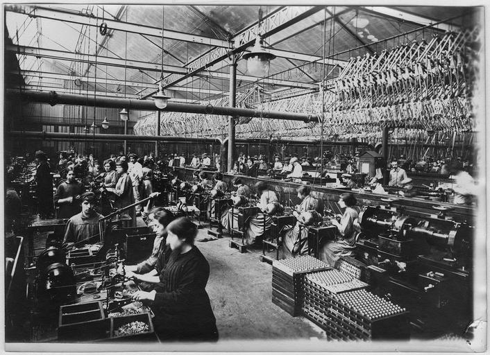 Des manufactures à de grandes usines publiques ou privées. En quelques décennies furent fondées plusieurs grandes manufactures, dont Saint-Étienne (1764-2001), la manufacture de Charleville (1675-1836), le berceau du fusil réglementaire. C’est elle qui mit au point le célèbre fusil modèle 1777, l’arme des troupes françaises de la Révolution et de l’Empire. Ce fut ensuite le tour de la manufacture de Tulle (1690-1971), celle de la marine avec l’arsenal de Rochefort, et les corderies royales. Un peu plus tard, sous Louis XV fut créée la manufacture de Klingenthal (1730-1962). D’autres encore émergèrent, comme celle de Versailles (1793-1818), mais celle de Saint-Étienne devait connaître un développement sans exemple. Elle fut transformée en usine moderne (1864-1868), capable de produire jusqu’à 200 000 armes par an. A son apogée, la firme MAS, son héritière pouvait sortir 1 600 fusils par jour… De ces époques, la Révolution industrielle vînt profondément changer la face des unités de production, avec l’apparition d’entreprises d’armements dans le privé. L’un des plus célèbres est l’entreprise des frères Schneider (1836), dans la ville du Creusot. L’entreprise deviendra le pendant de Krupp pour l’Allemagne, mettant au point des armes qui feront la gloire de la France, comme le fameux canon de 75 mm modèle 1897, la production de canons lourds de 155 mm, ou encore l’un des premiers chars français, le Schneider CA1 (1916).